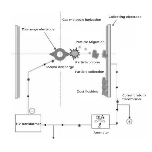 Elektrostaattinen erotin (ESP) on erittäin tehokas laite, jota käytetään poistamaan suspendoituneita hiukkasia teollisuuden pakokaasuista. ESP toimii sähköstaattisen vetovoiman periaatteella, jossa ilmassa olevat hiukkaset latautuvat ja sitten kerätään maadoitetulle pinnalle poistaen ne ilmasta. Laite koostuu tyypillisesti kahdesta avainkomponentista: purkauselektrodista ja kollektorielektrodista. Kun suurjännitetasavirta (DC) syötetään purkauselektrodille, syntyy voimakas sähkökenttä. Tämä kenttä ionisoi ilmassa olevat hiukkaset, jolloin ne saavat negatiivisen varauksen. Negatiivisesti varautuneet hiukkaset vedetään sitten positiivisesti maadoitettuun kollektoriin, jossa ne kerääntyvät ja lopulta poistetaan värinän ja mekaanisten menetelmien yhdistelmällä.